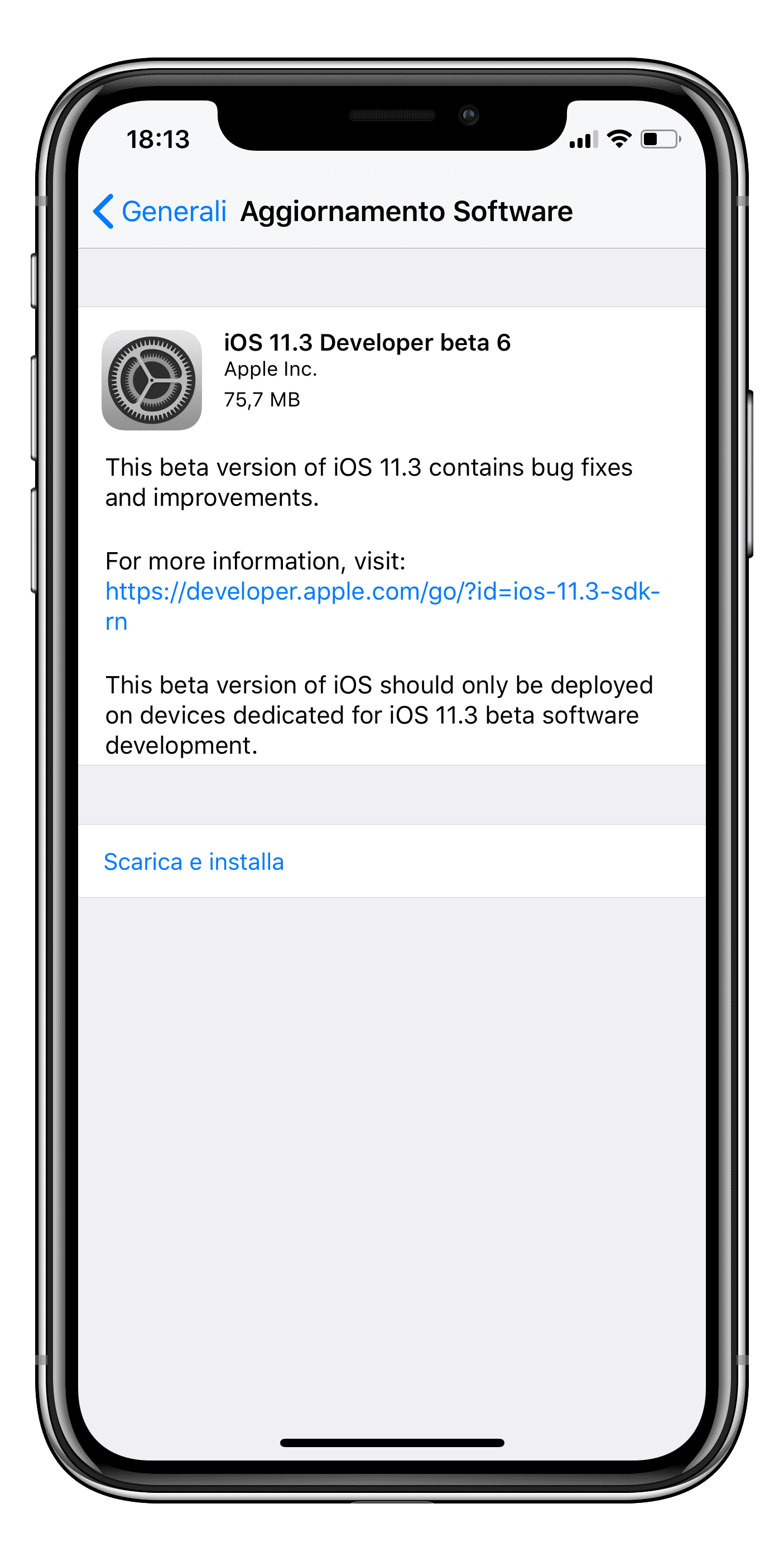 Apple ha appena rilasciato iOS 11.3 beta 6, in versione preliminare per gli sviluppatori.