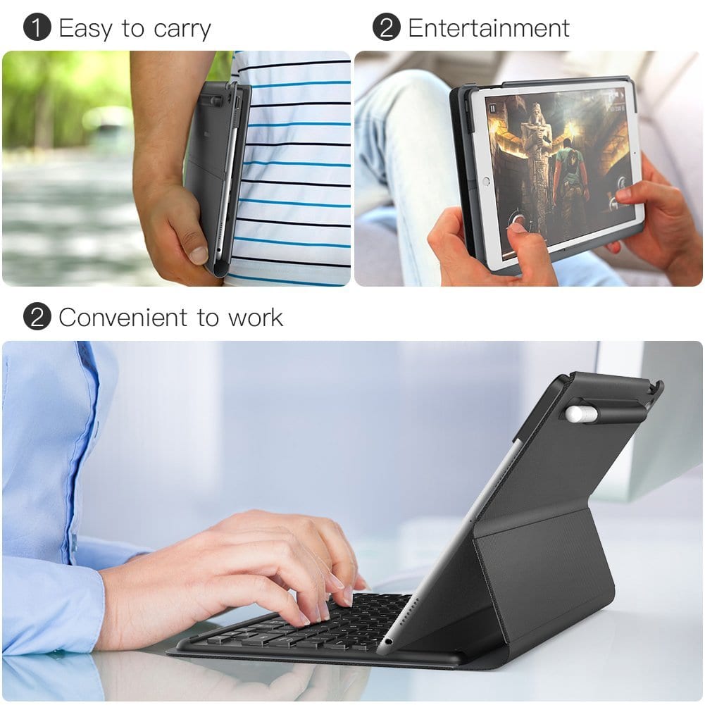 E’ concepita per iPad Pro da 10,5 pollici. Permette di fissare il dispositivo all’interno di quella che possiamo definire una cover, la quale, una volta aperta, offrirà un comodo appoggio al dispositivo, mantenendolo con la giusta inclinazione di 50 gradi. La tastiera in formato QWERTY è retroilluminata e ci aiuterà a digitare il testo più velocemente.
