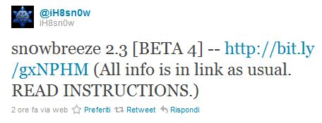 iH8sn0w ha appena rilasciato una nuova versione di Sn0wbreeze 2.3 beta 4 per il Jailbreak dell‘iOS 4.3 su Windows.