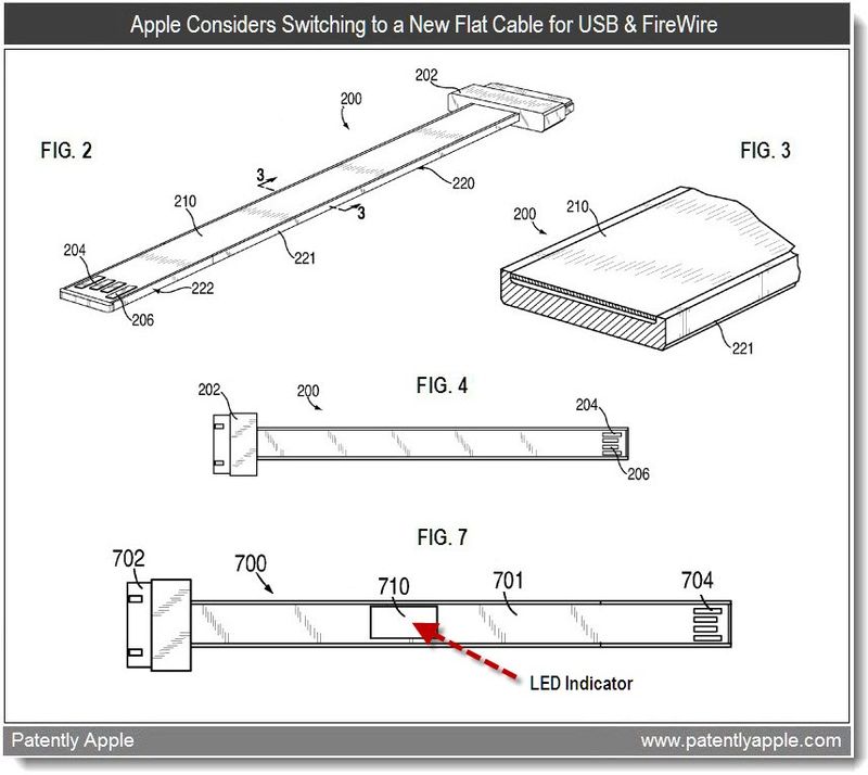 Apple registra moltissimi brevetti ed oggi possiamo vederne uno davvero interessante. Si tratta di un cavo dati piatto che potremo collegare via USB direttamente al PC o alla classica presa elettrica tramite alimentatore.