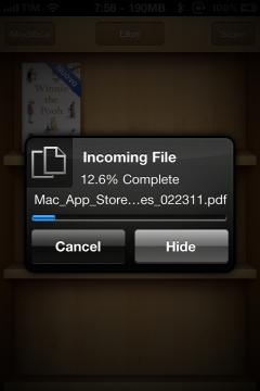 liccando il tasto Import, l’ho effettivamente ritrovato direttamente nell’applicazione iBooks che tra l’altro è stata avviata automaticamente per consentirmi la lettura del file!