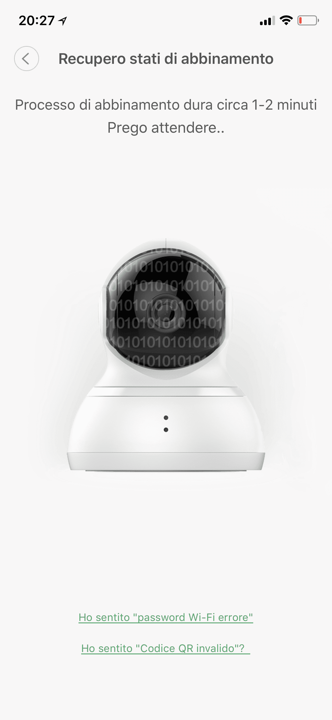 Avviate l’applicazione, perfettamente localizzata in lingua italiana, e dopo la procedura guidata al primo avvio, potrete cliccare il tasto (+) per aggiungere il prodotto che apparirà in una griglia fatta di immagini. Scegliete il modello che avete acquistato, poi verrà richiesta l’immissione della password del vostro WiFi domestico affinchè anche la videocamera possa farne uso, ed infine andranno abbinati i due dispositivi tramite la lettura di un QR Code che apparirà sullo schermo ed andrà posto di fronte alla videocamera. Quando l’abbinamento sarà completo, sentirete un audio che non sarà in cinese come le IP camera di Xiaomi, bensì in inglese.