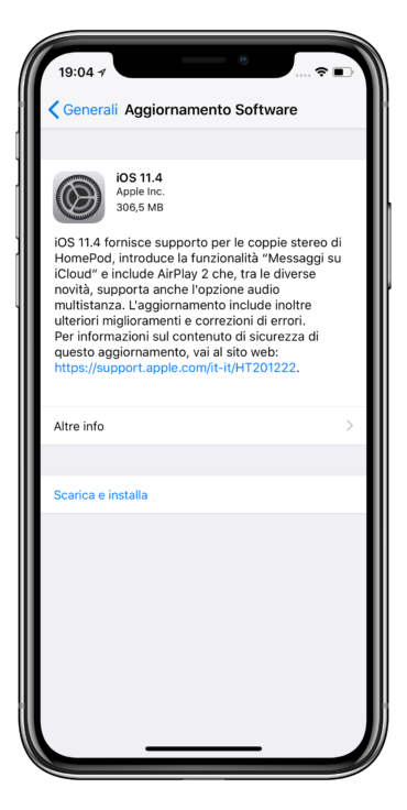 iOS 11.4 fornisce supporto per le coppie stereo di HomePod, introduce la funzionalità “Messaggi su iCloud” e include AirPlay 2 che, tra le diverse novità, supporta anche l’opzione audio multistanza. L’aggiornamento include inoltre ulteriori miglioramenti e correzioni di errori.