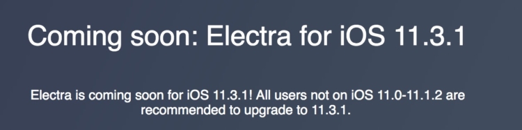Il sito ufficiale di Electra è stato recentemente aggiornato con una nota in calce nella quale si legge chiaramente che il tool supporterà presto iOS 11.3.1.