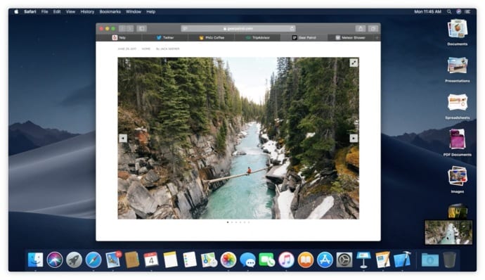 macOS Mojave introduce tante altre funzioni; partiamo dalla Scrivania, che spesso può risultare davvero piena di icone e cartelle, creando una confusione incredibile. Grazie alla funzione chiamata Stacks integrata su Mojave, potremo unire sul lato destro dello schermo tutte le decine di file che abbiamo e questi file vengono raggruppati secondo criteri ben precisi, tipologia di file, o altro. Posizionando il mouse su un’icona quest’ultima si espanderà permettendoci di scegliere il file che desideriamo.