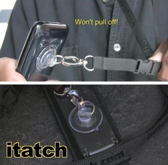 Tra le novità più interessanti troviamo la iTatch, una super-ventosa con cordicella da portare al collo che può reggere l’iPhone o l’iPod touch o qualsiasi altro telefono o dispositivo.