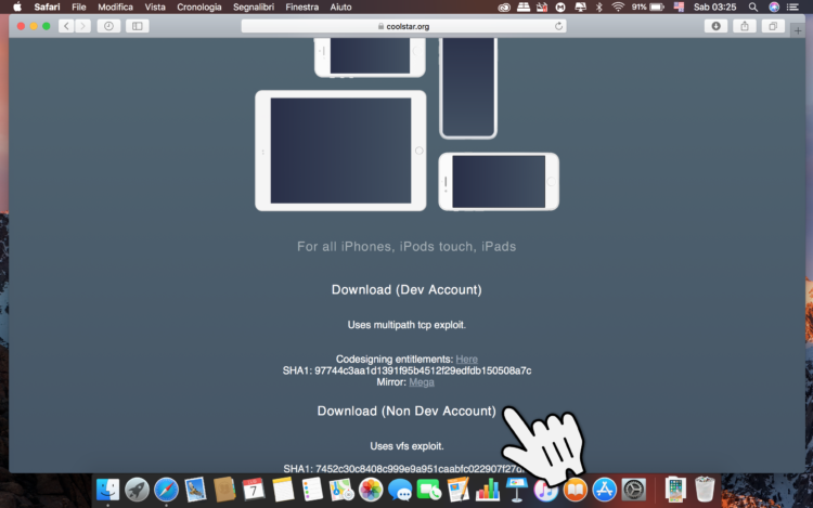 Trattandosi di un Jailbreak di tipo Tethered, l’applicazione Electra andrà certificata per funzionare. Se disponete di un Apple ID iscritto al programma per sviluppatori Apple, allora dovrete scaricare la versione di Electra per sviluppatori. In questo modo l’app avrà una validità maggiore. Se invece non avete un account da sviluppatori, scaricherete l’ipa di Electra (Non Dev Accounts).