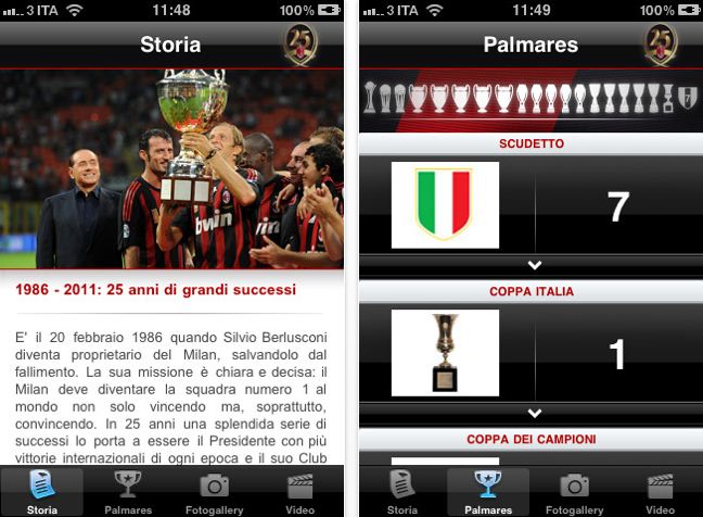 Milan25 è una nuova applicazione disponibile in AppStore che permette di rivivere le emozioni dei 25 anni di grandi successi di Silvio Berlusconi alla guida del Milan.
