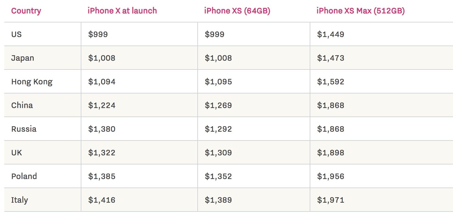 Provate ad indovinare in quale nazione i nuovi iPhone XS e XS Max vengono venduti con il prezzo più alto.