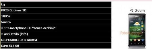 Sul sito Fotodigit.com, ha fatto la sua comparsa il nuovo terminale dell’azienda LG, che iSpazio ha avuto modo di provare al MWC di Barcellona, l’Optimus 3D. Vediamo il prezzo e la disponibilità secondo il sopracitato sito di eCommerce.