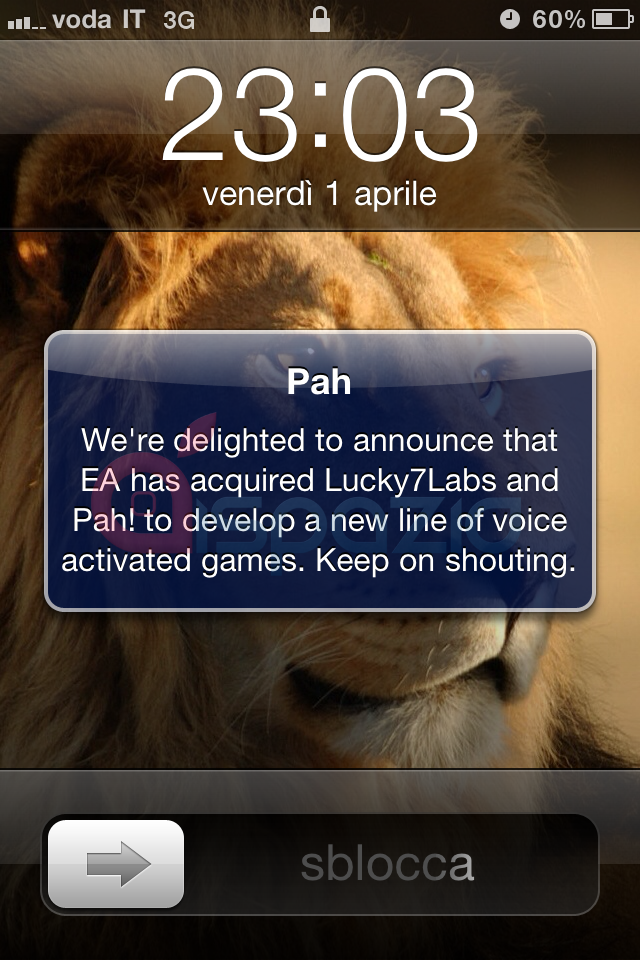 In un unico e sempre più raro momento di libertà mentale in cui mi stavo bellamente rilassando, vengo bruscamente interrotto da un suono prodotto dal mio iPhone: non era un SMS e neanche un’email, era una notifica Push che mi arrivava dal gioco “Pah“. Questa notifica non annunciava esattamente nuovi aggiornamenti del gioco, bensì una notizia ancora più grande: Electronic Arts, colosso dei videogames, ha acquistato Lucky7Labs, casa produttrice del gioco di cui vi abbiamo parlato pochi giorni fa, e presto arriveranno nuovi giochi per iOS controllati dalla nostra voce.