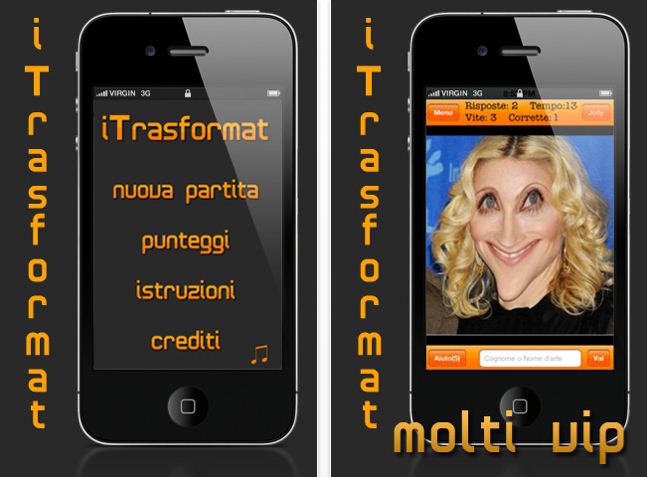 iTrasformat è un nuovo gioco disponibile in AppStore che di ispira ad una nota trasmissione televisiva. Dovremo indovinare chi sia il personaggio famoso che si cela dietro la foto ritoccata.