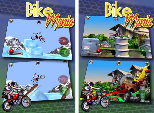 Bike-Mania è un nuovo gioco, disponibile in AppStore, che ci terrà occupati diverse ore. Dovremo salire sulla nostra moto ed eseguire tantissime acrobazie spericolate superando i vari livelli.