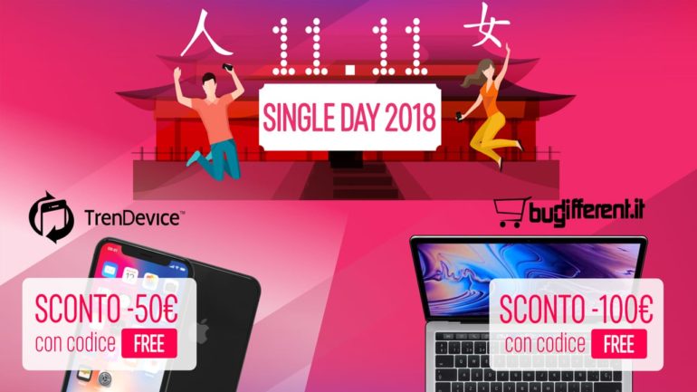 I siti partner TrenDevice e BuyDifferent, festeggiano il Single Day: la giornata di shopping più sfrenata dell’anno dedicata ai cuori solitari. Forse non sapete che l’11 Novembre in Cina, tutti gli e-commerce festeggiano la giornata dedicata ai single, offrendo sconti pazzeschi per 24 ore no-stop. Un successo strepitoso che si ripete anno dopo anno, coinvolgendo sempre più internauti e negozi online, alla pari del famoso Black Friday. TrenDevice e BuyDifferent non potevano essere da meno, anzi raddoppiano la festa! Infatti sia oggi 11 Novembre che domani 12 Novembre, TrenDevice offre uno Sconto di -50€ su tutti gli smartphone, tablet ed Apple Watch ricondizionati, mentre BuyDifferent offre uno Sconto di -100€ su tutti i Mac ricondizionati. Per usufruire di entrambi gli sconti, il codice da utilizzare è: FREE