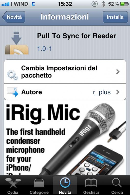 Potete scaricare gratuitamente Pull To Sync for Reeder tramite la repository di BigBoss
