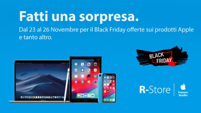 Per scoprire tutte le promozioni e gli sconti Black Friday R-Store è possibile visitare uno dei negozi della catena Apple Premium Reseller nazionale, fino a lunedì 26 novembre con apertura straordinaria domenica 25 novembre di tutti i negozi della catena. In alternativa, fate un salto sul sito ufficiale.
