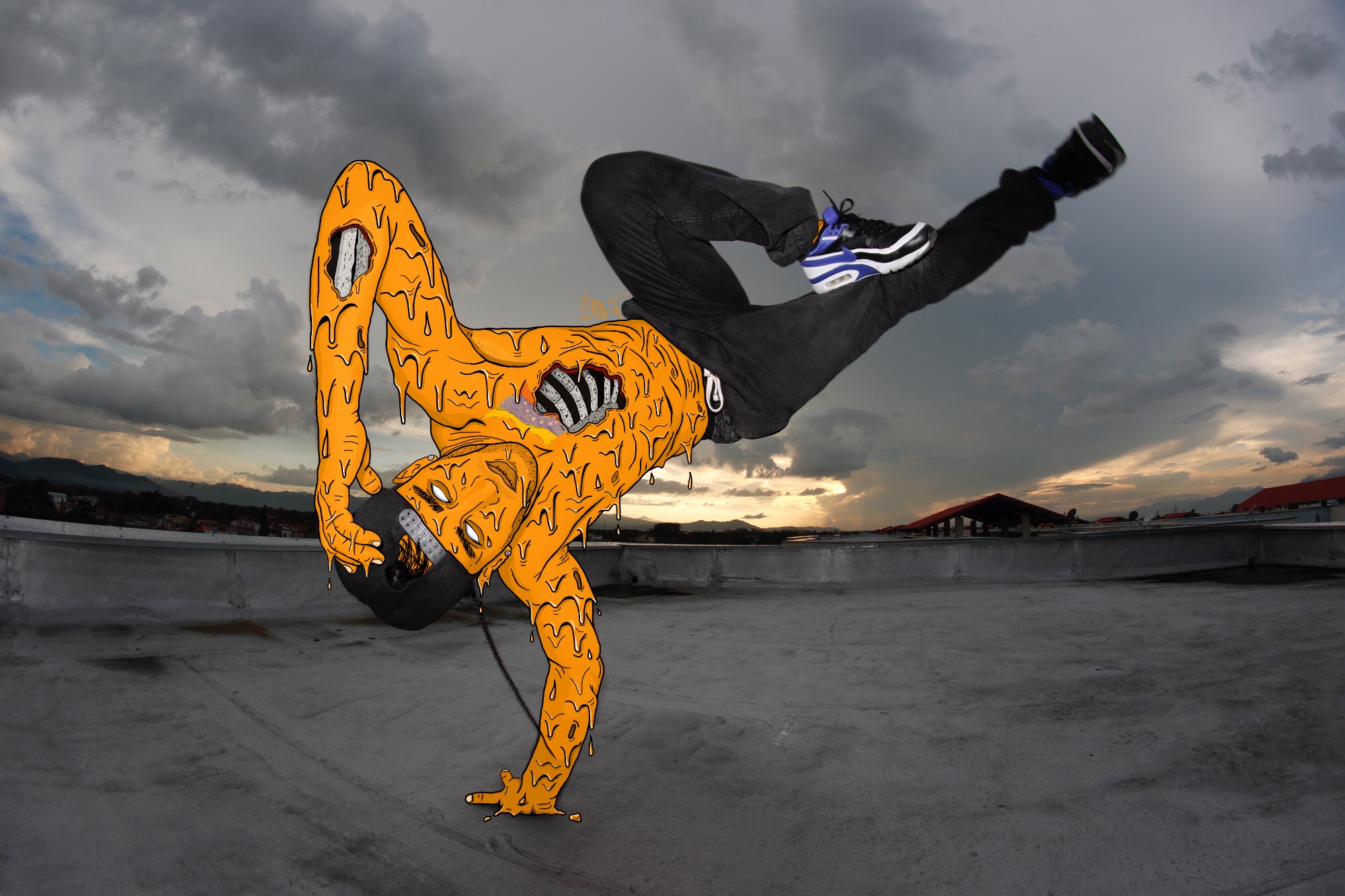 Passiamo a Gianluca, in arte “Spak”, un ragazzo di 29 anni napoletano che balla Break Dance. Lui ha iniziato con un iPad Mini 2 e l’applicaione Sketchbook. La sua Arte è molto particolare e sostanzialmente parte da una foto reale a cui applica un effetto “grime” dove appunto “scioglie” la faccia e tutto il corpo, realizzando dei “zombie-cartoon”. Seguitelo su instagram con il nome @bboyspak