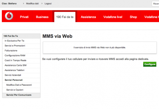 Grazie alla segnalazione di un nostro utente, abbiamo scoperto che sia per i clienti business che per quelli consumer, Vodafone ha deciso di eliminare la possibilità di inviare MMS gratuiti tramite il proprio sito web.