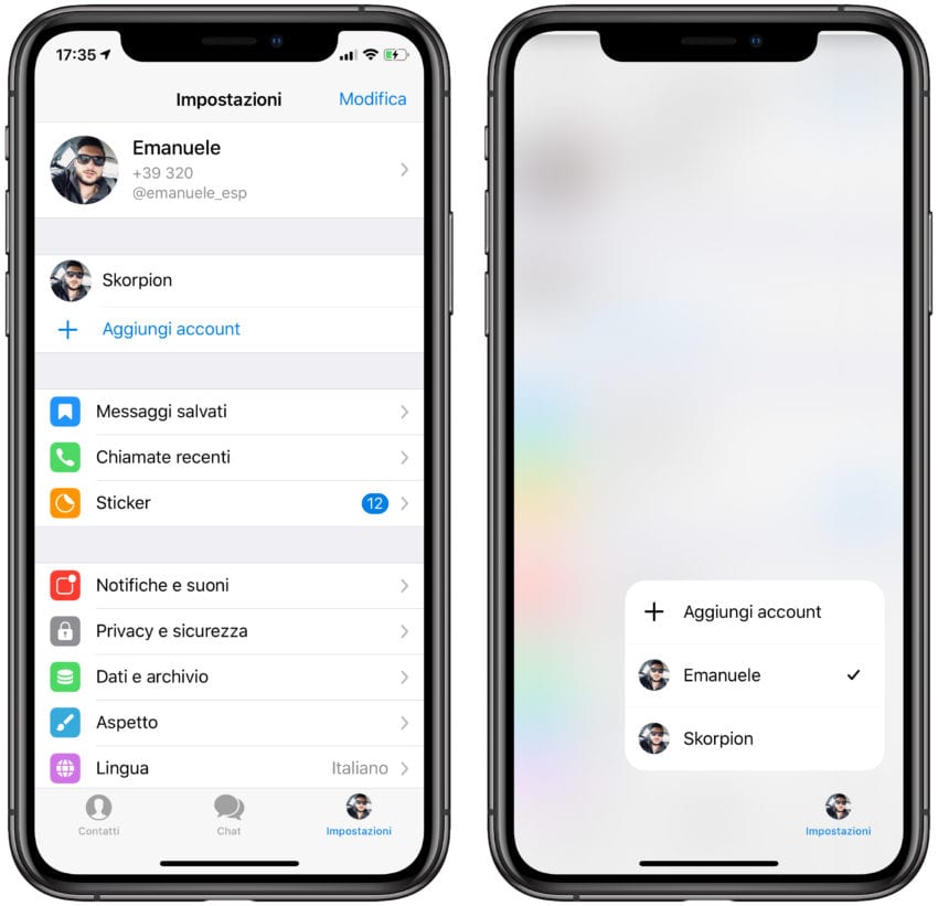 Questa funzione permette, in poche parole di loggarsi all’interno della stessa applicazione con due o più account e gestire in maniera separate chat, gruppi e canali.