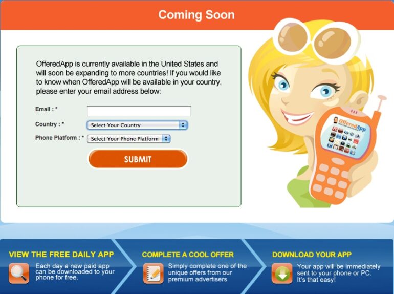- per scaricarla sarà necessario rispondere ad alcuni questionari con domande relative al mercato e nelle quali gli utenti potranno vedere alcuni advertisement pubblicitari;