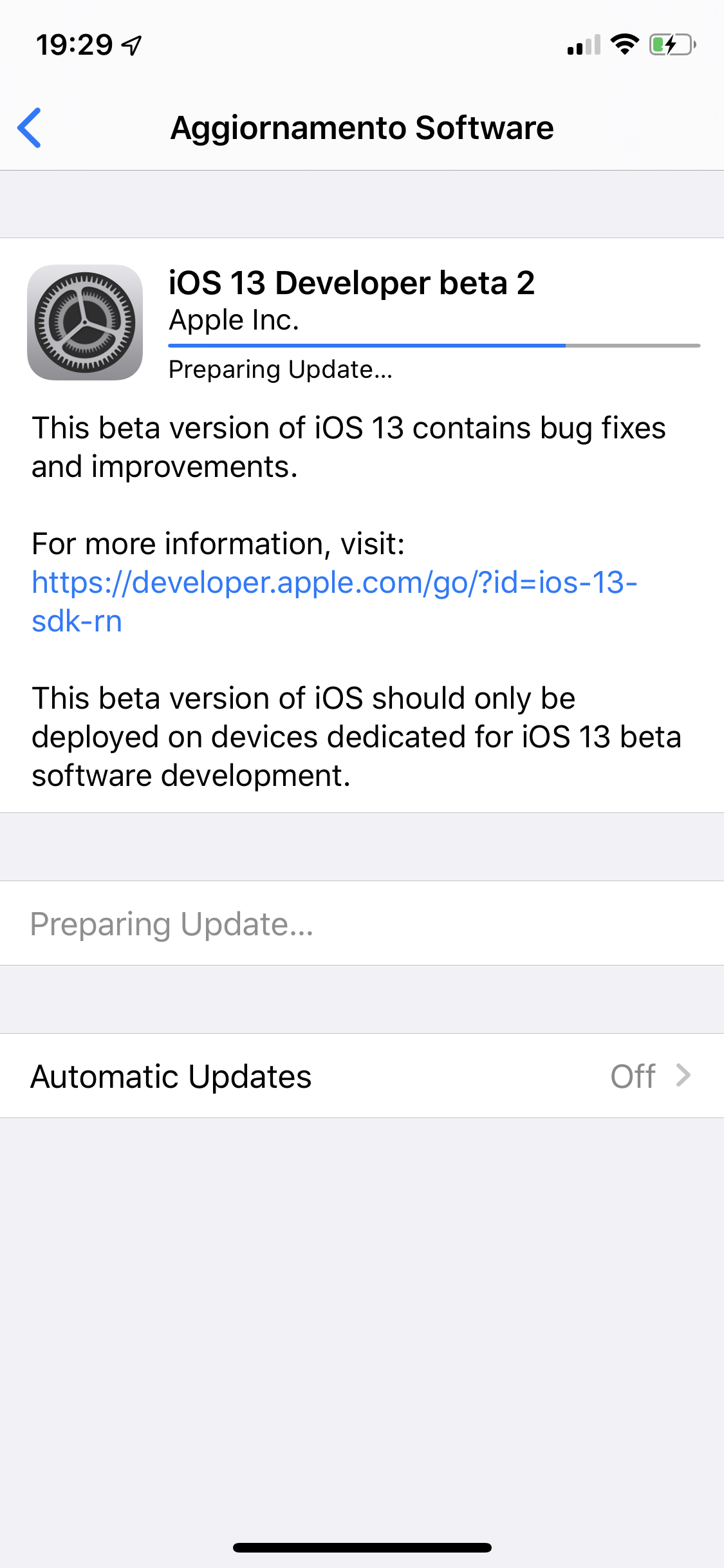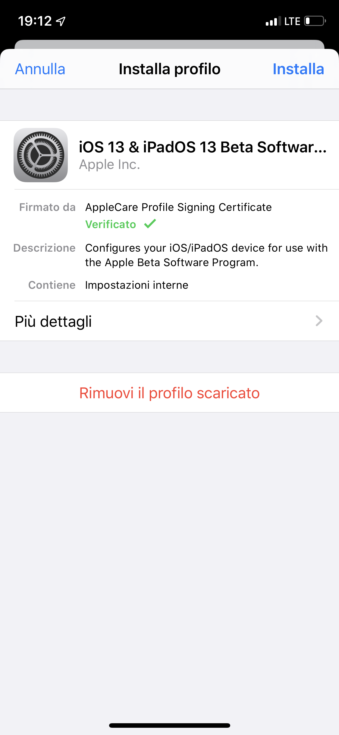 1. Questa beta si installa con il profilo di configurazione quindi tramite aggiornamento OTA e pesa circa 600 MB