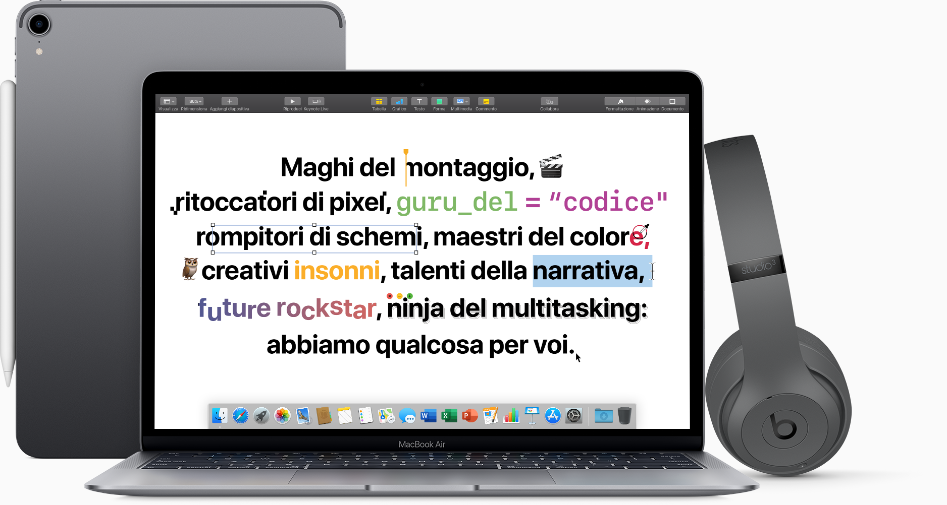 MacBook Air e MacBook Pro rientrano anche nell’offerta Back to SchoolApple, che permette di avere un paio di cuffie Beats Studio 3 Wireless con l’acquisto di un portatile Mac o un iMac che rientra nell’iniziativa. Con il loro design sottile e portatile, i display Retina, prestazioni eccezionali per le attività più comuni, una batteria che dura tutto il giorno e macOS, i notebook Mac non sono mai stati così popolari nel mondo dell’istruzione superiore.