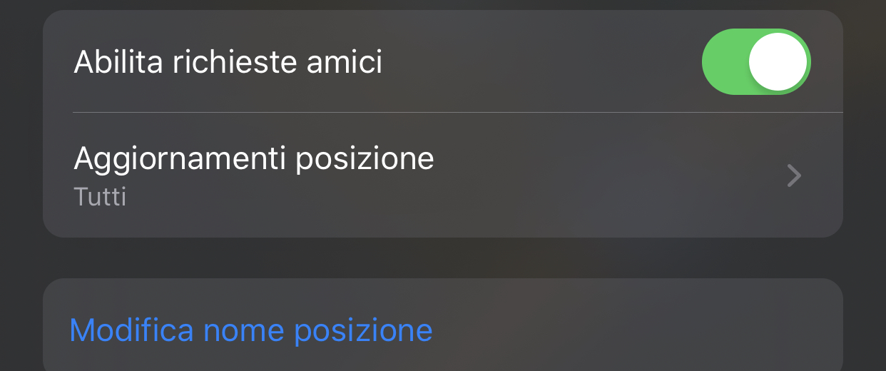 29. Nella sezione “Io” dell’app Dov’è è stato modificato il tab “Aggiornamenti posizione”, ora l’opzione scelta viene mostrata subito sotto al nome del tab.