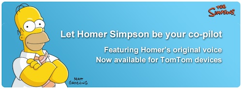 Sviluppata in partnership con Twentieth Century Fox Consumer Products (FCP), The Gracie Films Worldwide Brand Division e Locutio Voice Technologies, la voce originale di Homer Simpson (registrata da Dan Castellaneta), per navigatori TomTom, è disponibile all’acquisto a 5.99$.