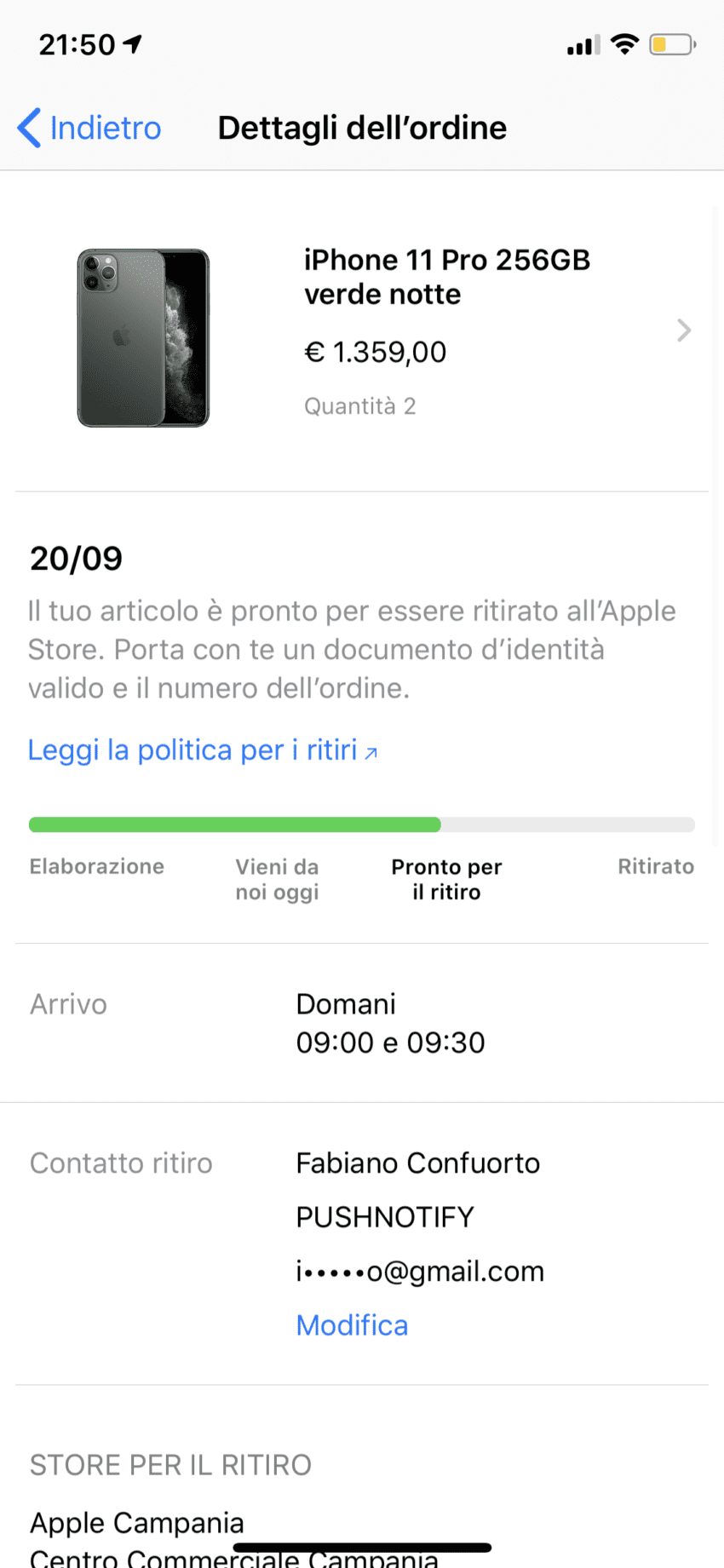 Tutti gli utenti sono già stati notificati sia della spedizione avviata attraverso corriere, sia della prenotazione in Apple Store, con la scritta “Pronto per il ritiro“. A quest’ultimi utenti, sono state inviate anche le istruzioni per velocizzare la vendita, mostrando un QR code con il codice di prenotazione oppure aggiungendo l’ordine a Wallet. Non dimenticare di portare un documento di riconoscimento con voi in Apple Store.