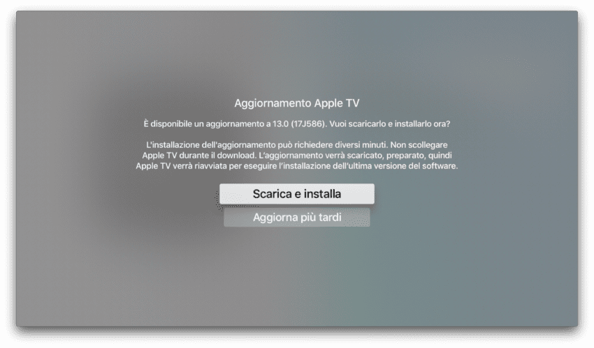 Apple TV è un prodotto davvero semplice da installare e non richiede nè Backup nè Ripristini. Per eseguire l’aggiornamento, molto semplicemente: