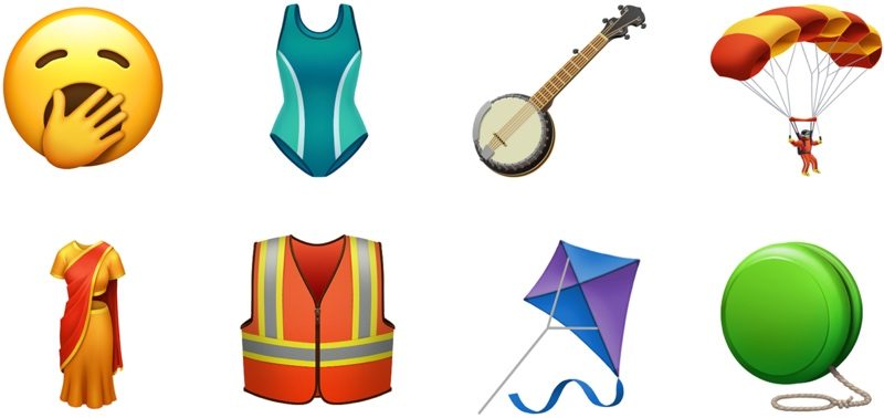 Nuovi volti, gesti e pose in arrivo includono il viso sbadigliante, la mano che pizzica, la persona in ginocchio, la persona in piedi e le nuove persone che si tengono per mano con opzioni che includono sia il genere che il tono della pelle, inoltre ci sono una vasta selezione di altre emoji varie.