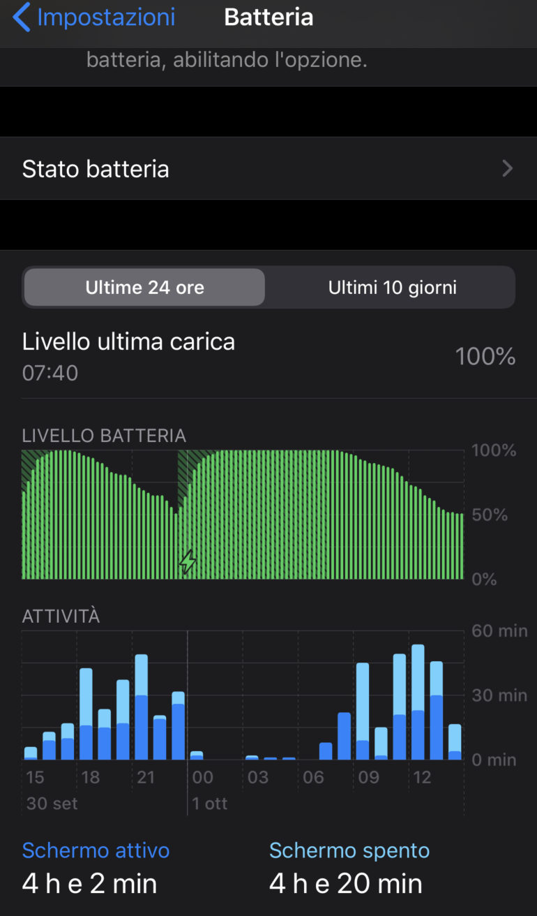 Quando attivo, possiamo vederlo sul grafico della batteria dell’iPhone. Come mostrato nell’esempio sopra, c’è un “passo” chiaro nel gradiente del grafico di ricarica. Quando è collegato all’alimentazione, l’iPhone raggiunge rapidamente l’80% di carica. Quindi rimane con questo livello di carica per il resto delle ore notturne.