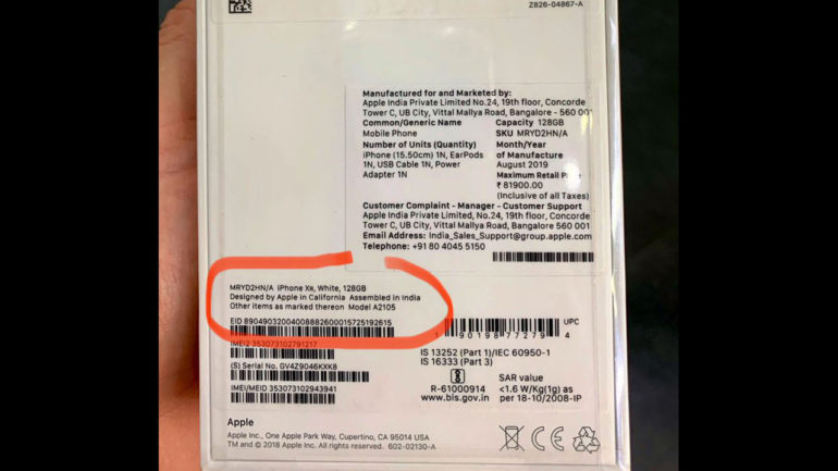 Un rapporto della scorsa settimana ha riferito che una struttura Foxconn aveva iniziato a produrre l’iPhone XR in India, e una nuova foto lo conferma. Il The Wall Street Journal ha condiviso una fotodi una scatola dell’iPhone XR stampata con il tag “Progettato da Apple in California, assemblato in India”