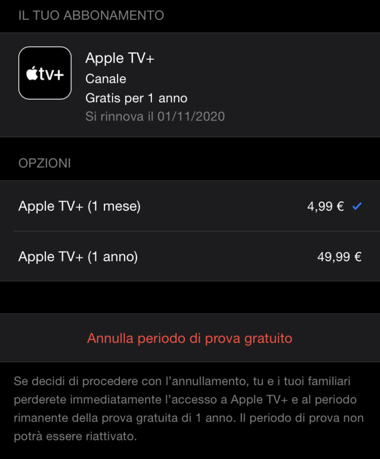L’abbonamento annuale di Apple TV + offre un risparmio annuale di 9,89€ rispetto al piano mensile di 4,99€ (circa uno sconto del 15%). Gli utenti possono selezionarlo senza influire sulla prova gratuita di un anno accedendo alla sezione Account dell’app TV: Gestisci abbonamenti > Apple TV +.