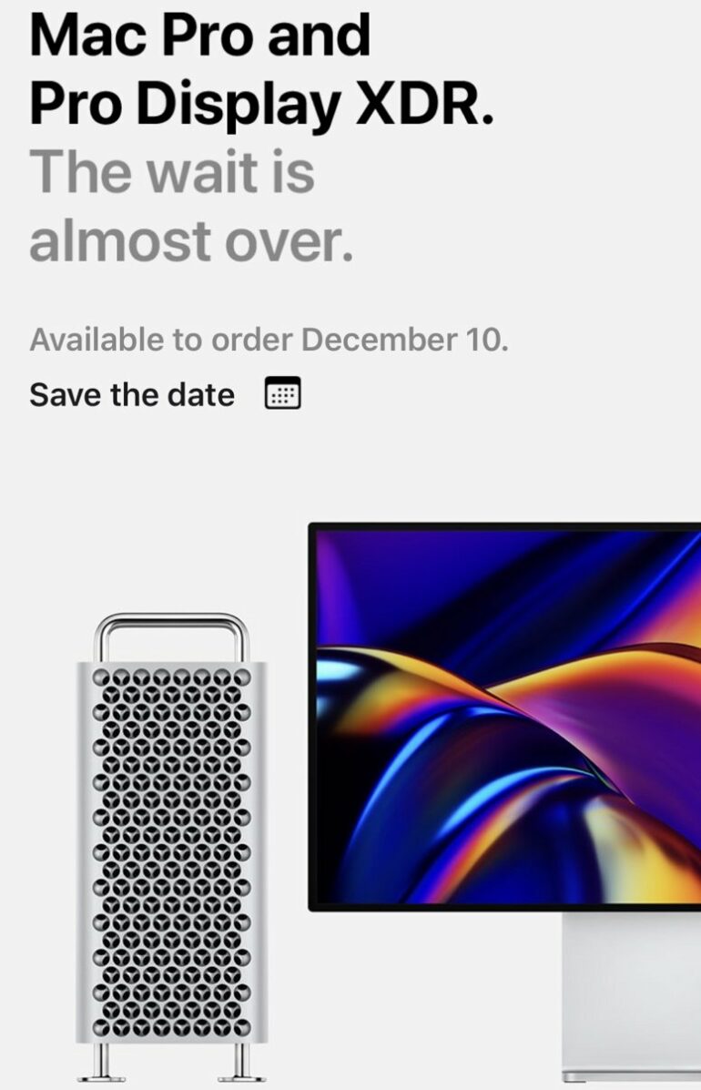 Secondo le e-mail di “Save the Date” che Apple ha iniziato a inviare ad alcuni clienti, la società prevede di rilasciare il nuovo Mac Pro e il Pro Display XDR martedì 10 dicembre.
