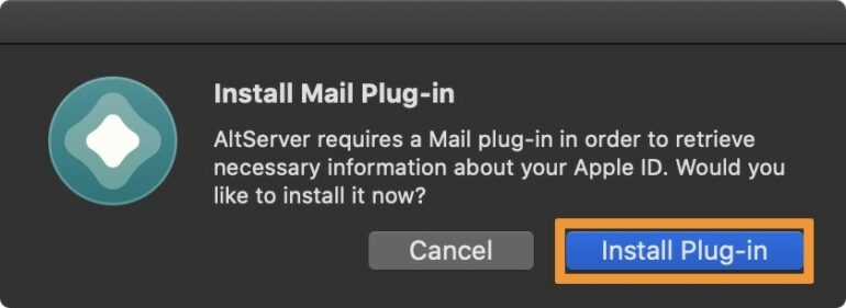- Fare clic sull’icona AltStore nella barra dei menu e fare clic sull’opzione Installa Mail plug-in: