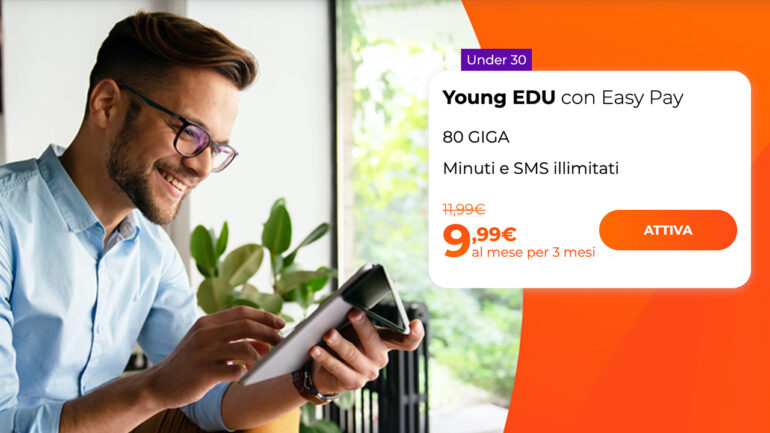 La Young EDU invece, offre 80 Giga di traffico dati internet in 4G, minuti ed SMS illimitati a 9,99€ al mese per i primi 3 mesi, dopodichè il costo mensile sarà di 11,99€. Questa tariffa è riservata a chi ha meno di 30 anni ed anche questa si può attivare online entro il 3 Aprile.