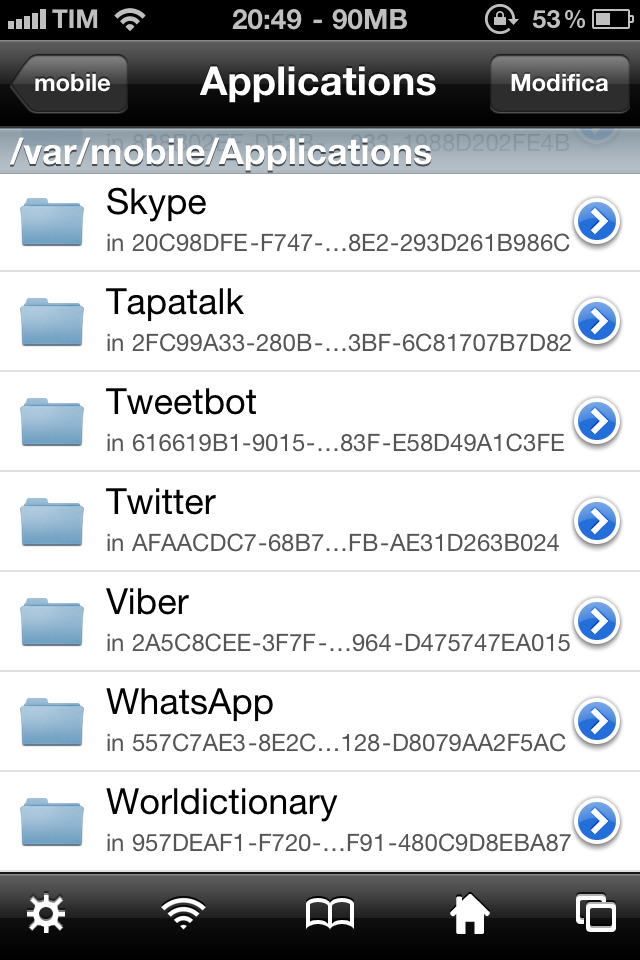 4. Dirigetevi in /var/mobile/Applications/TweetBot/Tweetbot.app – Cliccate ancora il tasto Modifica e poi “Incolla”.