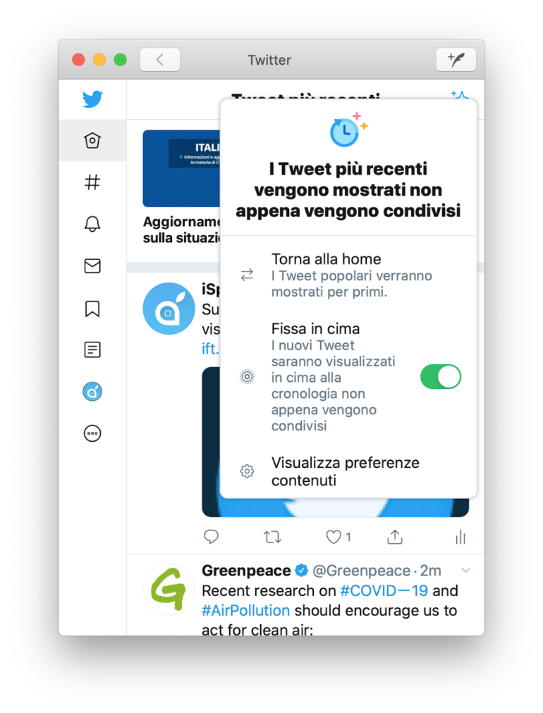 Twitter ha appena rilasciato un aggiornamento per la sua app ufficiale per Mac con una funzionalità tanto attesa: la possibilità di ottenere un flusso live di tweet recenti. Gli utenti adesso sono in grado di vedere tutti i tweet appena pubblicati (cronologicamente) senza dover aggiornare manualmente la timeline nè mostrando per prima i tweet popolari.