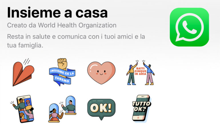 Sempre in merito a Whatsapp, vi segnaliamo che è stato introdotto un nuovo Sticker Pack chiamato “Insieme a casa“. Graficamente non è niente di eccezionale ma include sticker con frasi del tipo “Tutto ok?” oppure dei cuori ed altri gesti per esprimere vicinanza. Se vi piacciono gli stickers, vi ricordiamo che anche noi di iSpazio abbiamo lanciato dei pacchetti da installare in Whatsapp, li trovate qui.