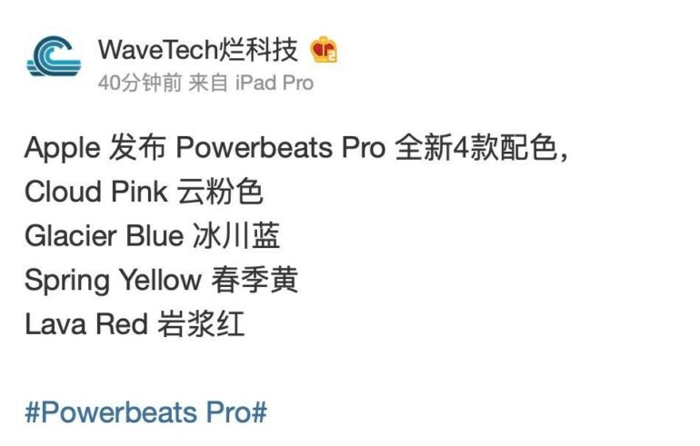 Secondo un post sul social network cinese Weibo, Apple rilascerà presto quattro nuovi colori per le PowerBeast Pro: Cloud Pink, Glacier Blue, Spring Yellow e Lava Red.