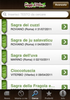 E’ anche possibile effettuare la ricerca di una sagra per nome, provincia, regione o in base ad una data che preferisci e si potranno salvare tra i preferiti gli eventi di tuo interesse per consultarli in modo rapido anche senza connessione.