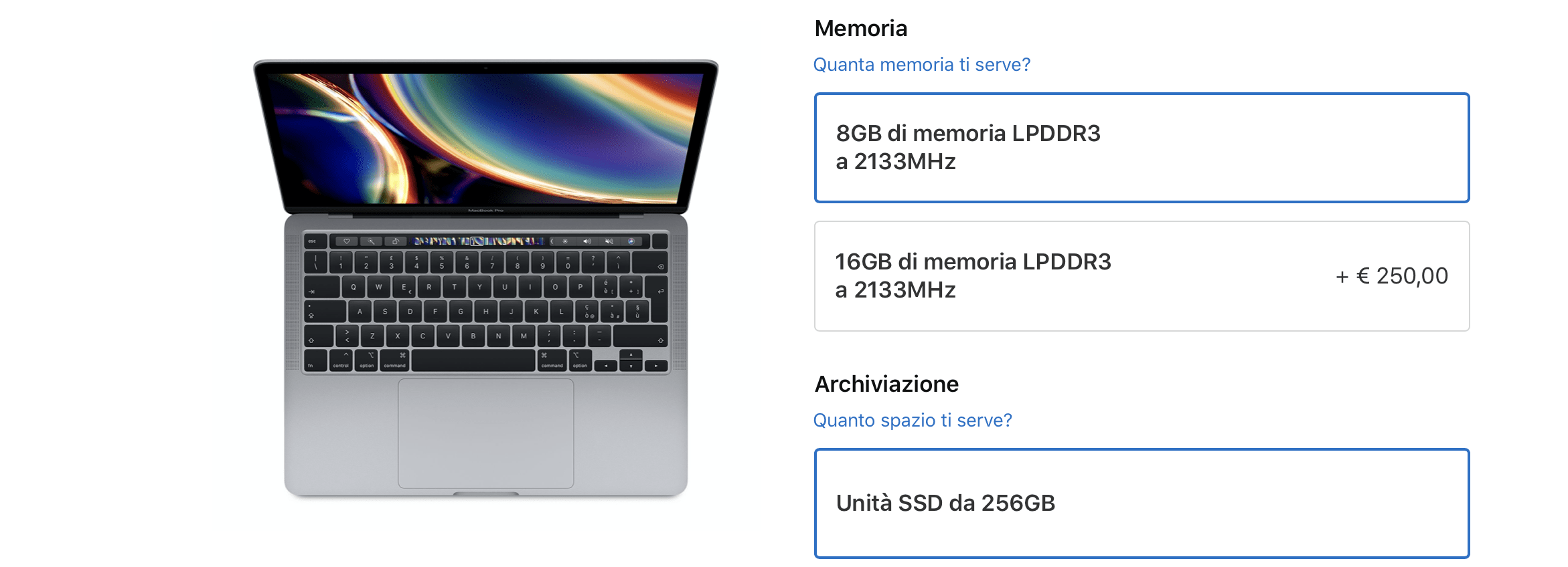 Precedentemente il costo per l’opzione da 16 GB di RAM era di 125 €, mentre adesso ha un prezzo di 250 €. L’Italia non è l’unico paese in cui Apple ha raddoppiato i prezzi per la RAM, anche in Germania, Regno Unito e Stati Uniti la società ha modificato i prezzi.