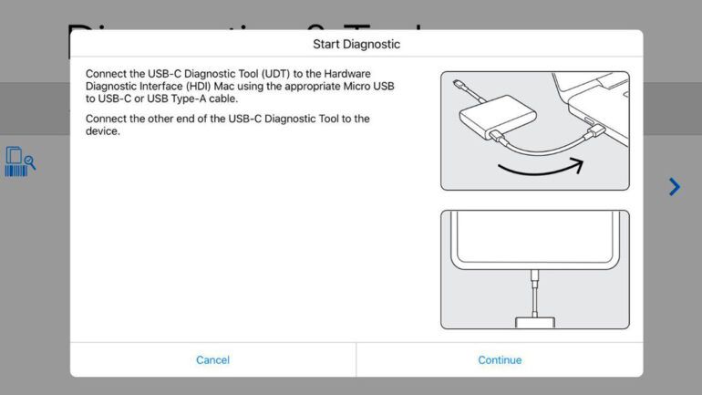 Sulla base delle informazioni di cui sopra, sembra che un tecnico dovrebbe collegare l’UDT al Mac Hardware Diagnostic Interface (HDI) utilizzando il cavo appropriato e l’altra estremità al dispositivo di destinazione per utilizzare correttamente il nuovo strumento e ottenere informazioni diagnostiche.