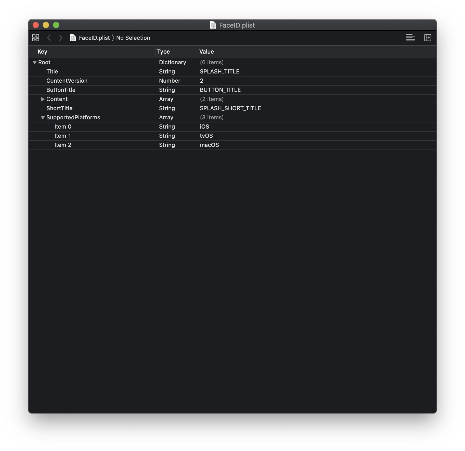 Lo screenshot mostra il file FaceID.plist su un Mac e possiamo notare che le piattaforme di supporto sono iOS, tvOS e macOS.