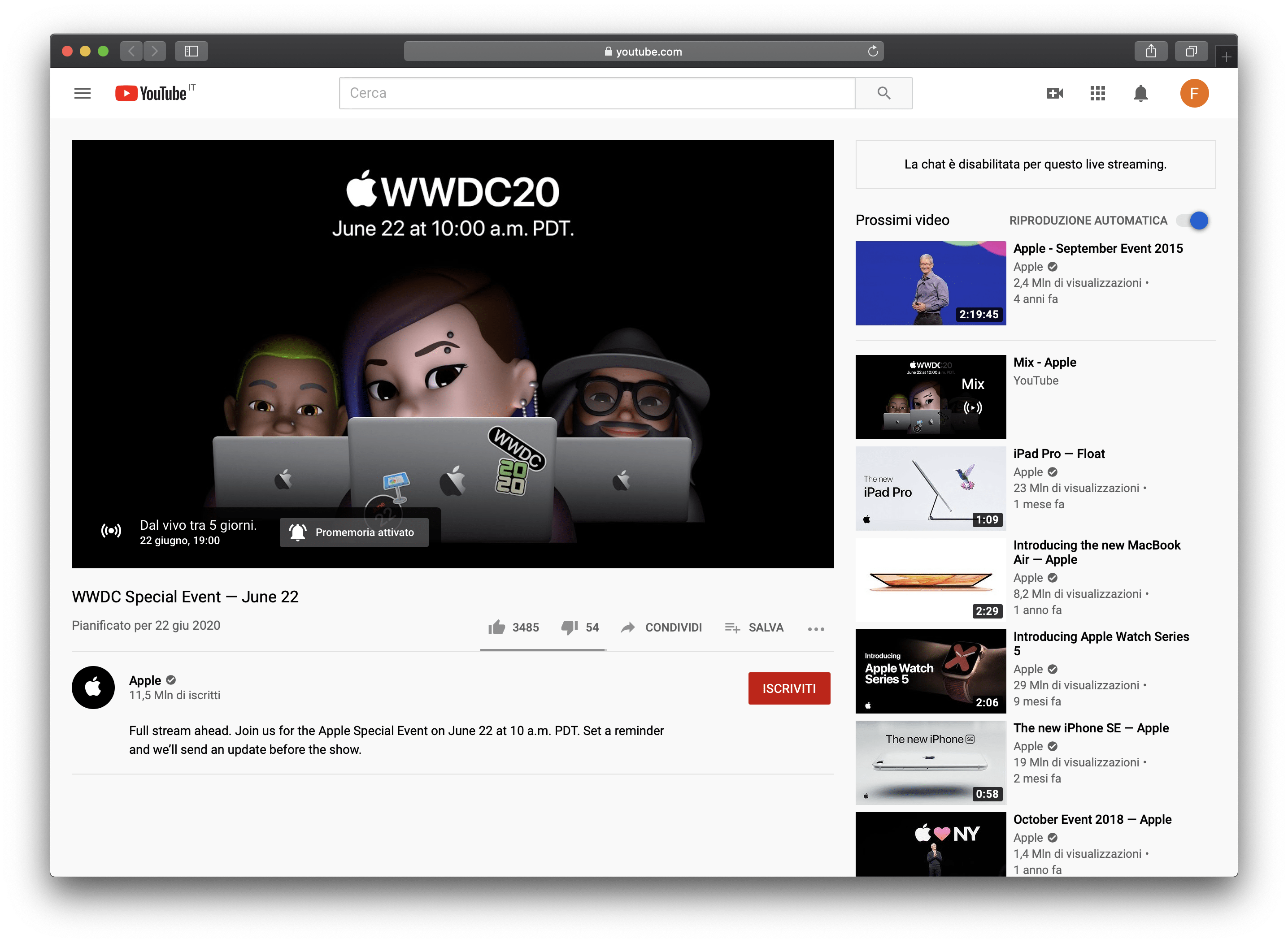 Ciò significa che saremo in grado di guardare la diretta streaming del keynote della WWDC 2020 su YouTube. Scegliamo l’opzione “Imposta promemoria” per ricevere una notifica prima dell’inizio dell’evento. Le sezioni Platforms State of the Union e altre sezioni del WWDC rimarranno esclusive del sito Web degli sviluppatori Apple.