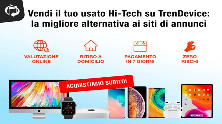 Se volete vendere il vostro usato Hi-Tech senza perdere tempo, in modo facile, veloce e sicuro, TrenDevice è il miglior sito dove vendere il vostro dispositivo usato, anziché sui siti di annunci ed aste online; risparmierete perdite di tempo in trattative con i privati che spesso si concludono in un nulla di fatto. Vendendo il vostro usato direttamente a TrenDevice eviterete lo stress di gestire i vostri annunci, le trattative con gli acquirenti (spesso indecisi), e non dovrete preoccuparvi neppure della spedizione: l’azienda ritira a proprie spese il vostro dispositivo con il Corriere Assicurato di fiducia presso l’indirizzo che voi indicherete. Dopo 7 giorni lavorativi, riceverete il pagamento concordato, direttamente sul vostro conto corrente.