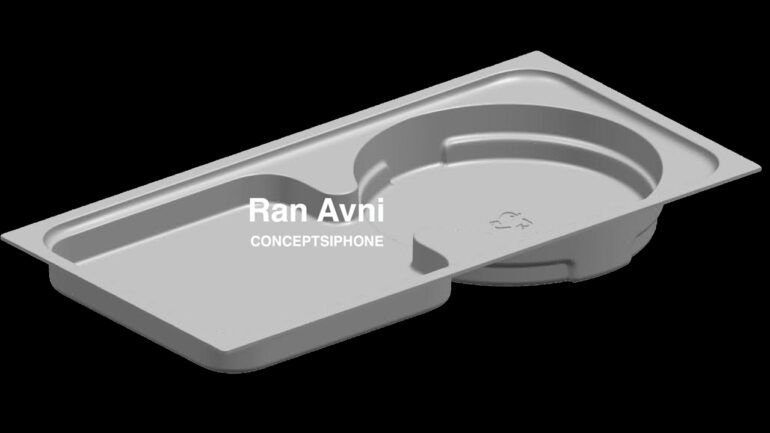 L’inserto, presenta un profilo molto sottile con un’area circolare che dovrebbe ospitare un cavo da USB-C a Lightning e un’area quadrata che dovrebbe contenere le varie scartoffie e gli adesivi tradizionali forniti con i prodotti Apple. Per quanto riguarda il dispositivo, la società dovrebbe appoggiarlo al di sopra dell’unico accessorio presente nella confezione.