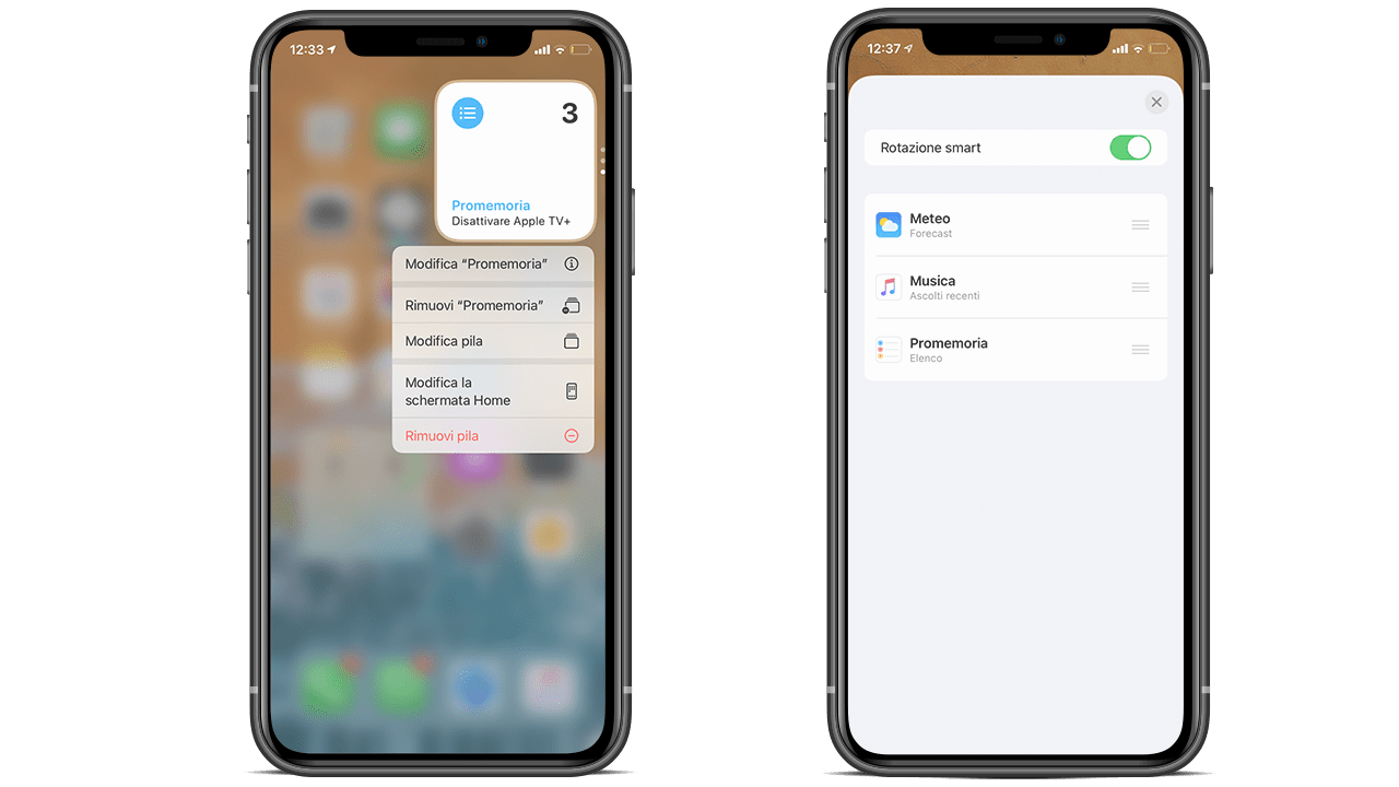 Puoi scorrere dall’alto verso il basso (o viceversa) sulla pila per scorrere tra i widget oppure possiamo consentire ad iOS di passare automaticamente da un widget all’altro attivando la “Rotazione smart“.