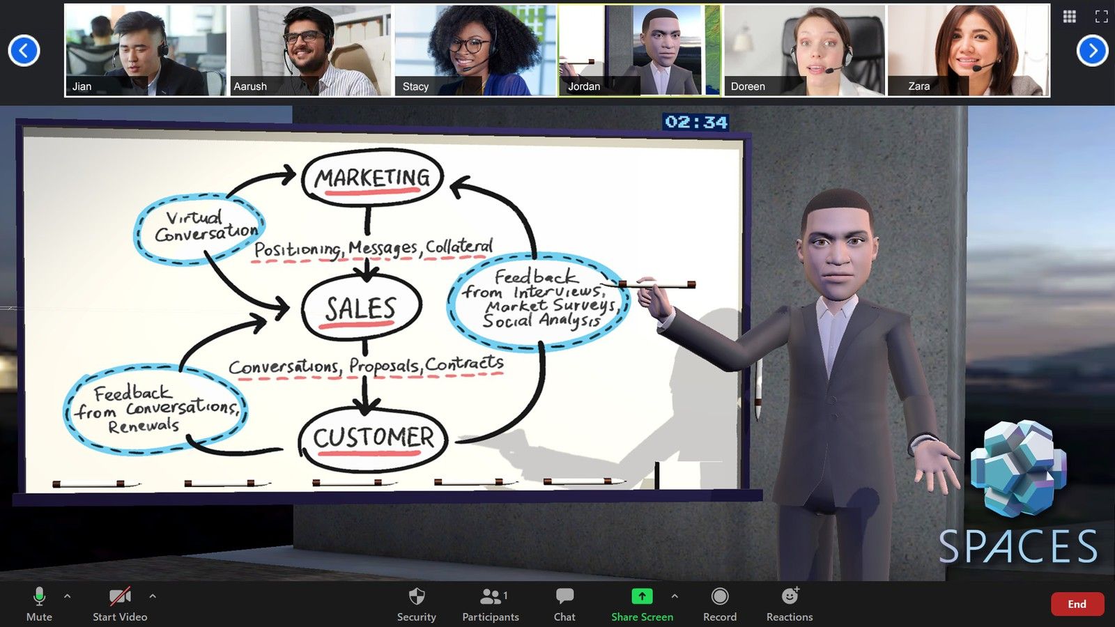 Spaces è stato creato nel 2016 dai veterani di DreamWorks Animation e da allora la startup ha sviluppato prodotti VR, incluso un componente aggiuntivo di Zoom che consentiva agli utenti di tenere videoconferenze in realtà virtuale utilizzando avatar animati.